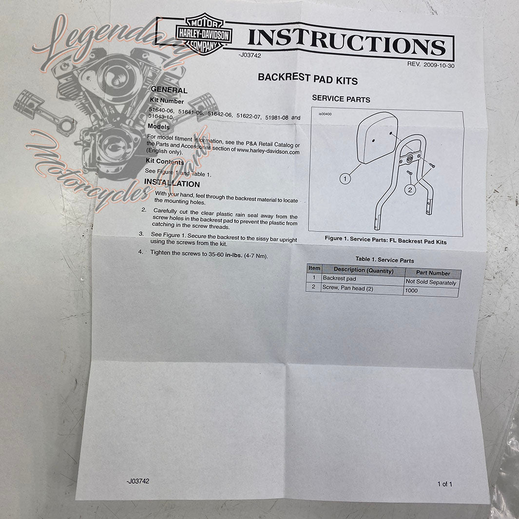 100th Anniversary Sissy Bar Pad OEM 51197-03