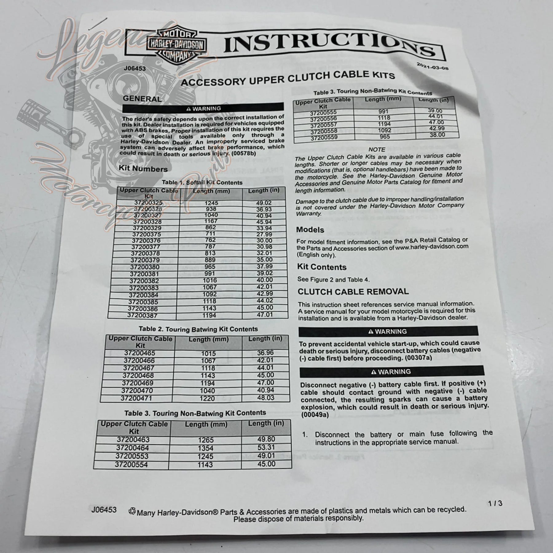Compatibilities:Compatible with Touring models from 2021 onwards equipped with fairing. Length: 45.00"