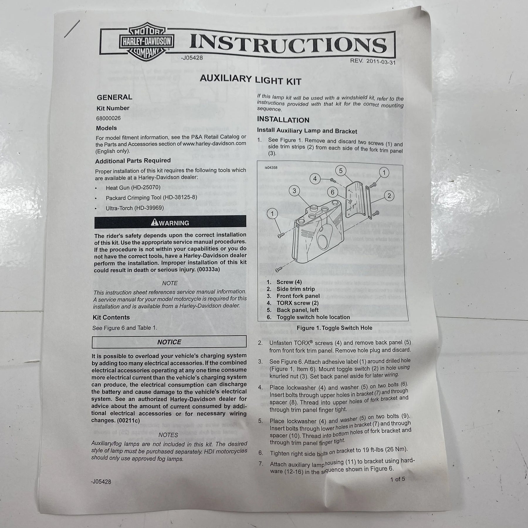 Deluxe Auxiliary Light Kit OEM 68670-05A