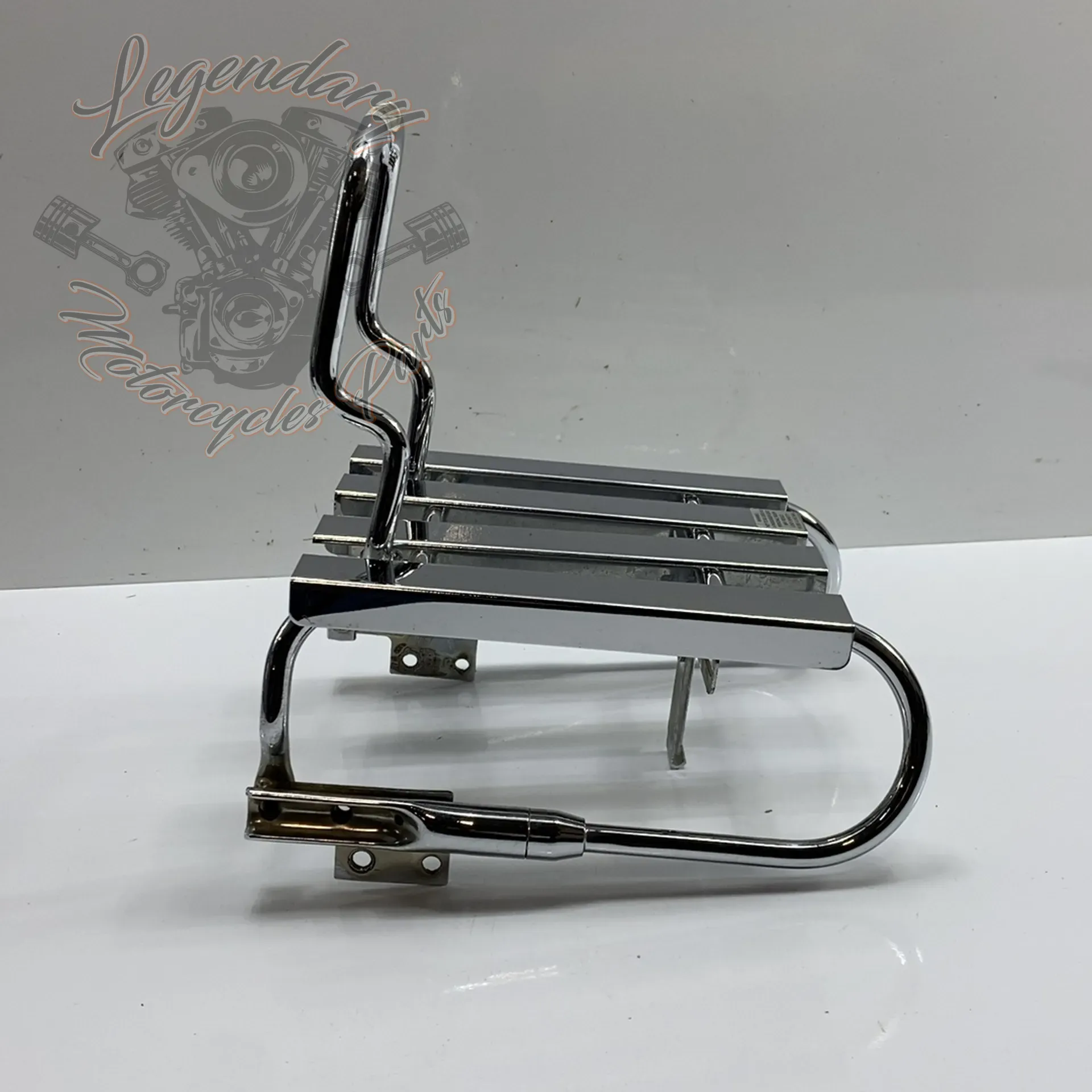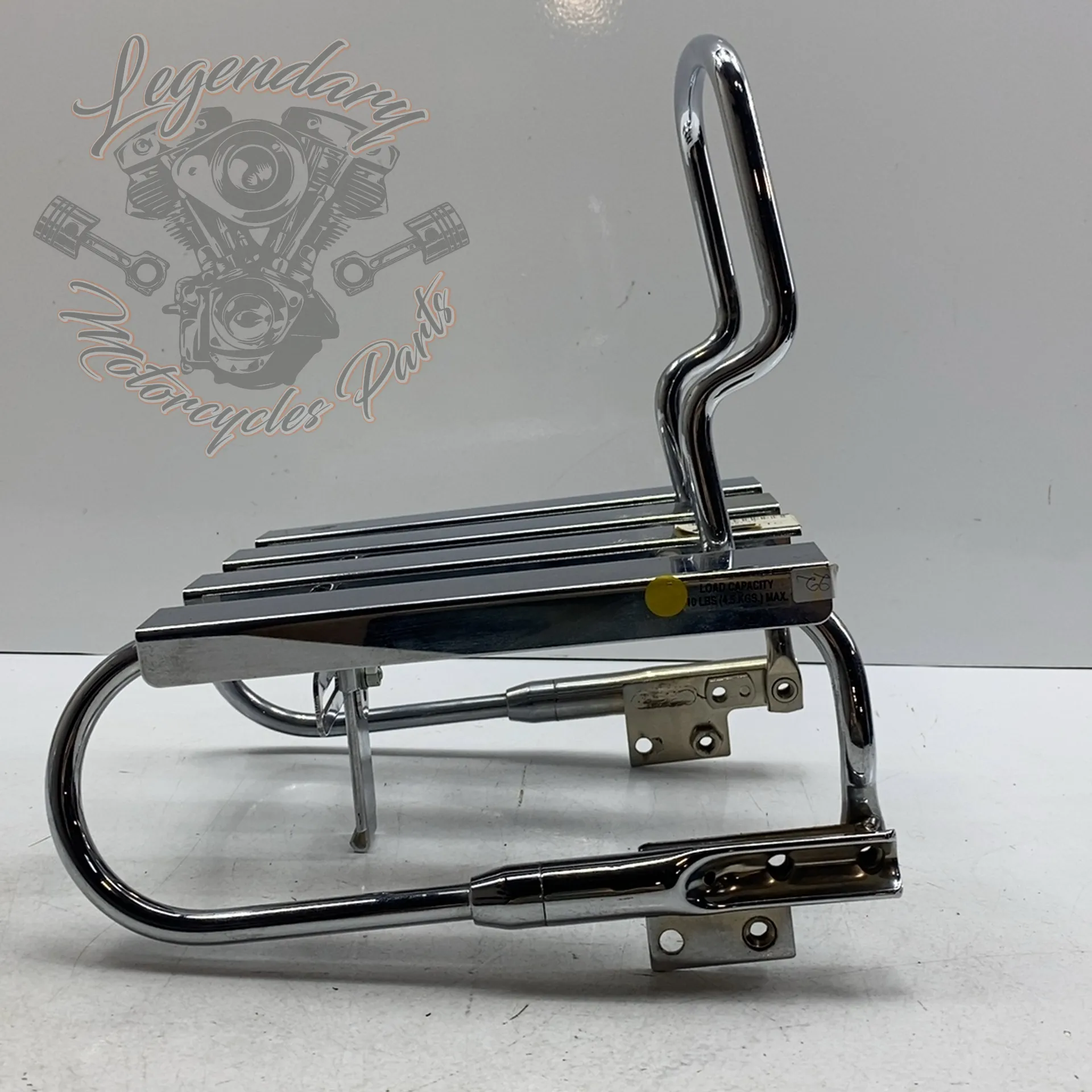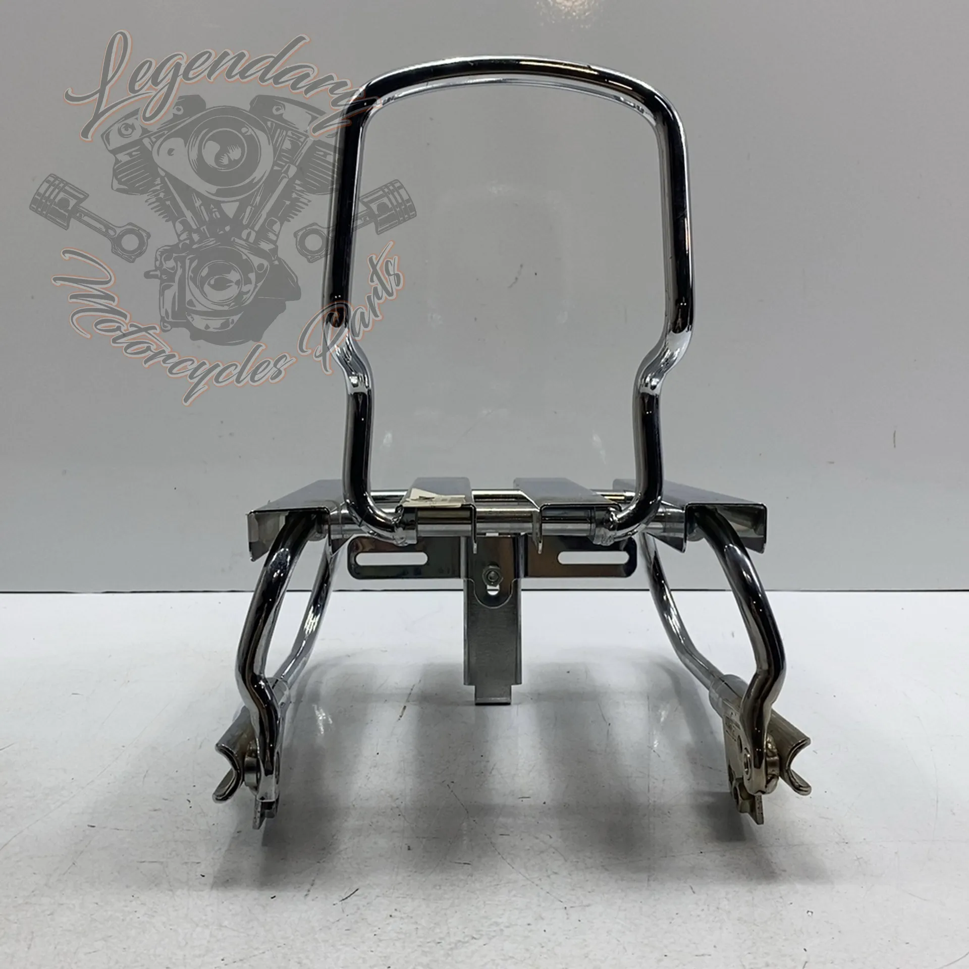 Integrated sissy bar, accepts Road King pad ref. 52555-94 An integrated chrome license plate holder accepts license plates up to 9.1 inches wide and 5.25 inches high.