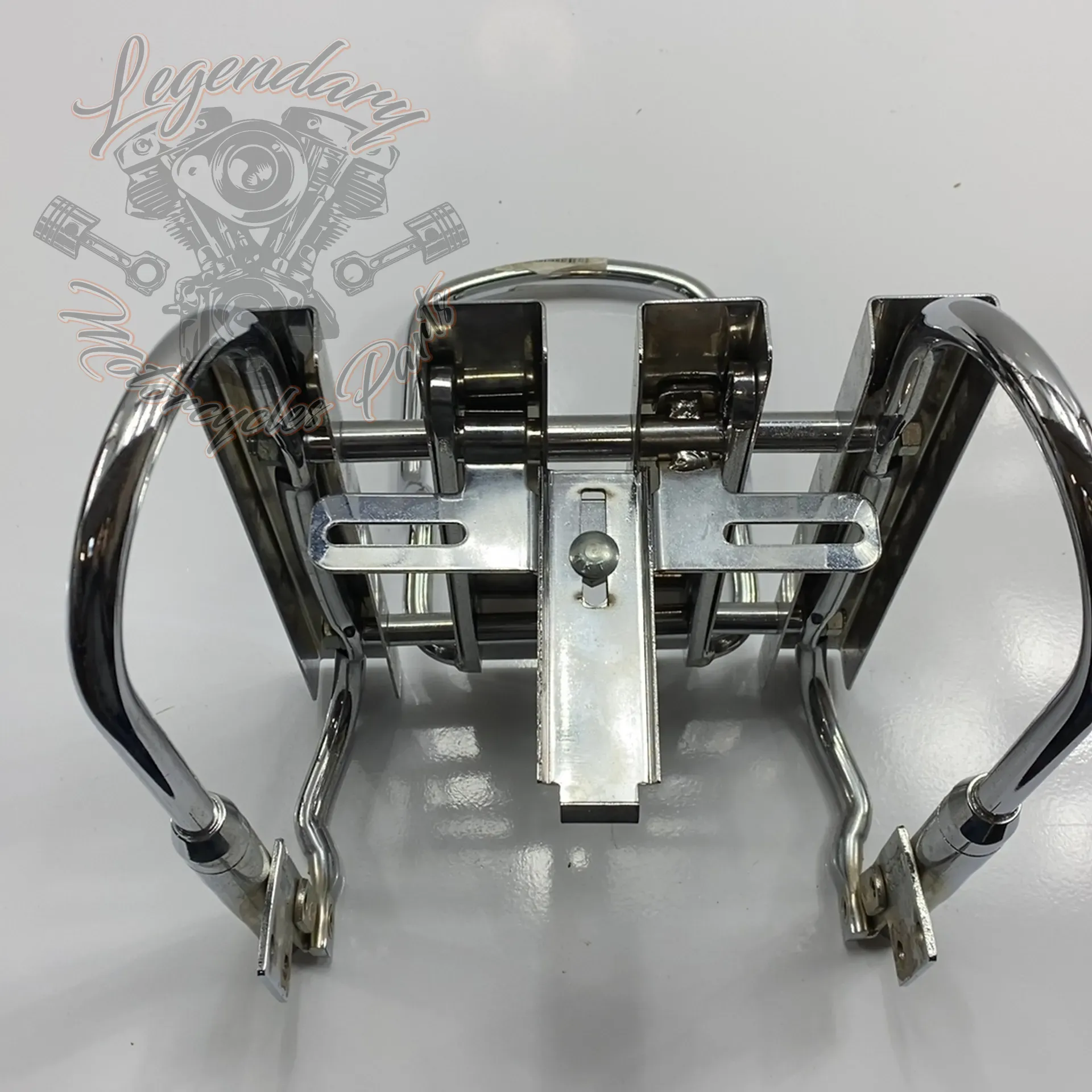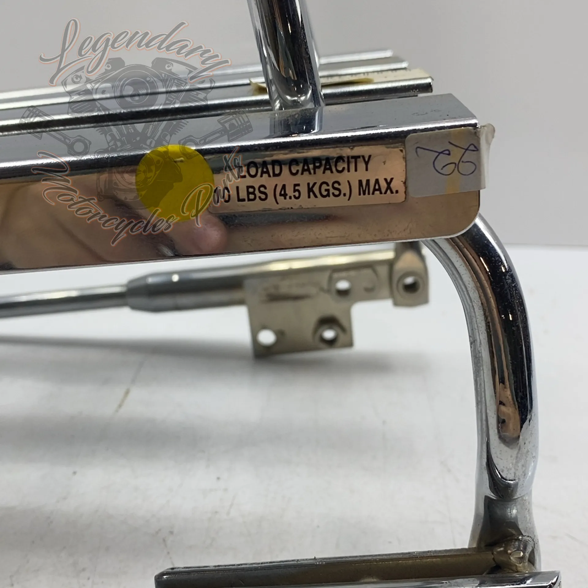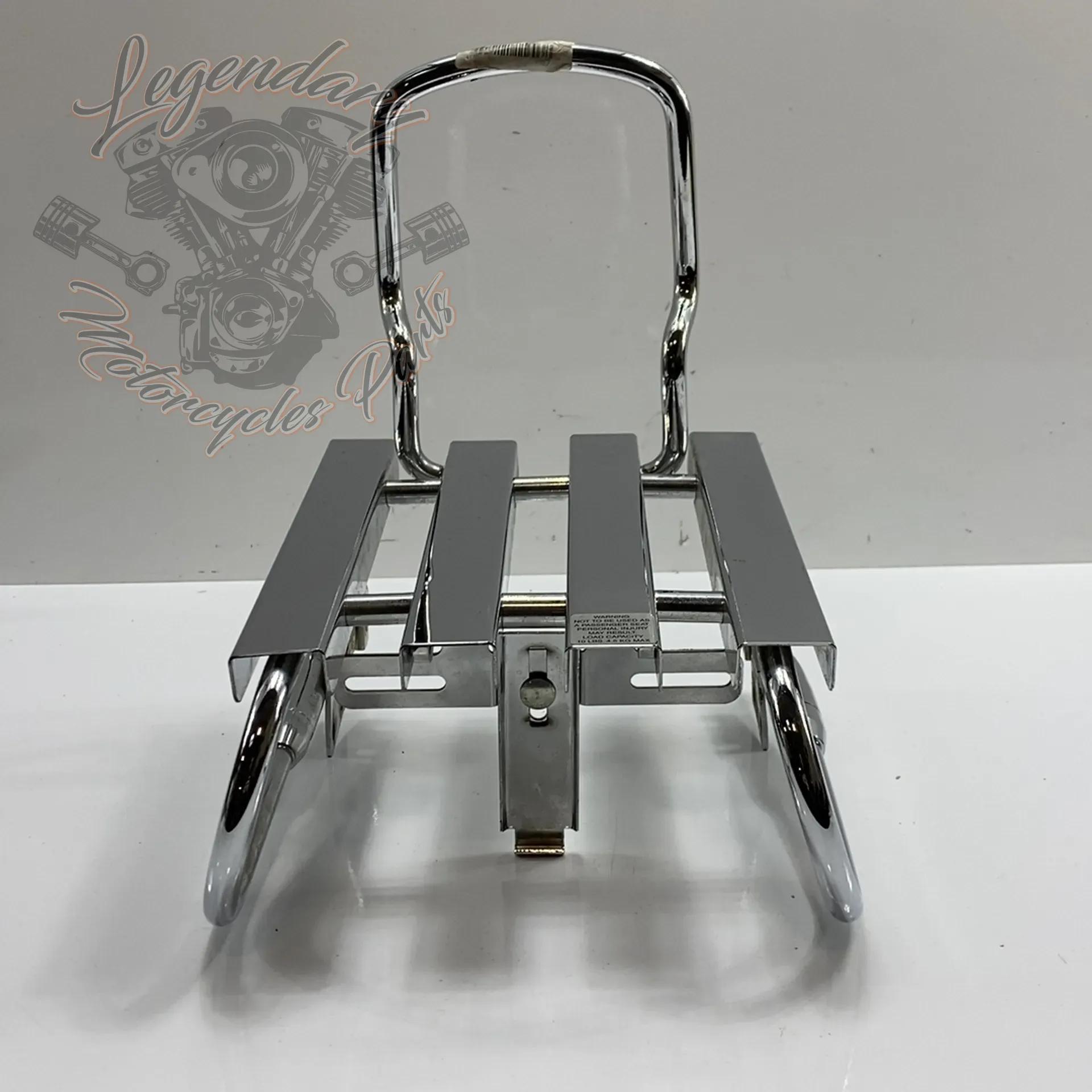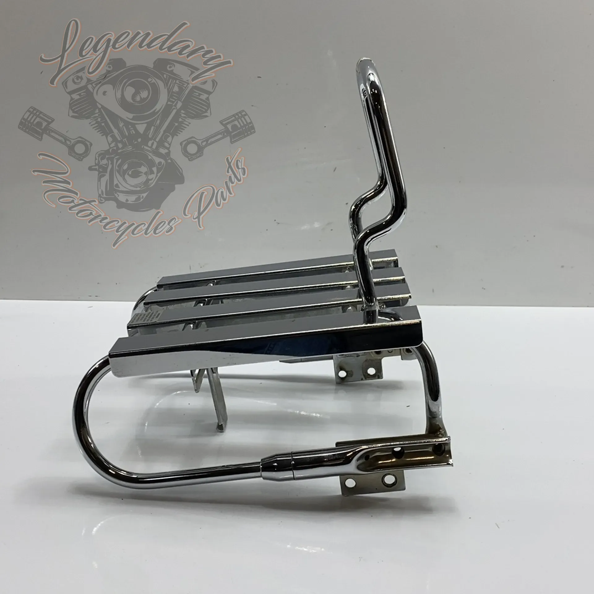 Integrated sissy bar, accepts Road King pad ref. 52555-94 An integrated chrome license plate holder accepts license plates up to 9.1 inches wide and 5.25 inches high.